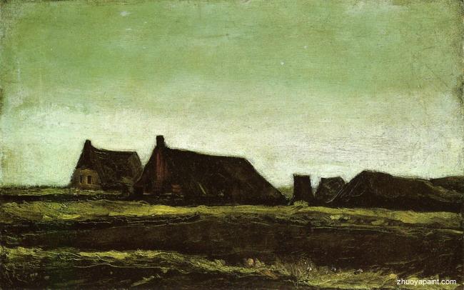 Farms, originally hand-painted by famous artist Vincent Van Gogh. This original masterpiece was painted on canvas in 1883. The original dimensions are height: 36 cm (14.17 in.)and width: 55.5 cm (21.85 in.). It is currently located at Van Gogh Museum (Netherlands).